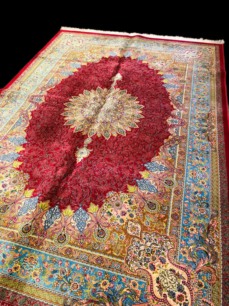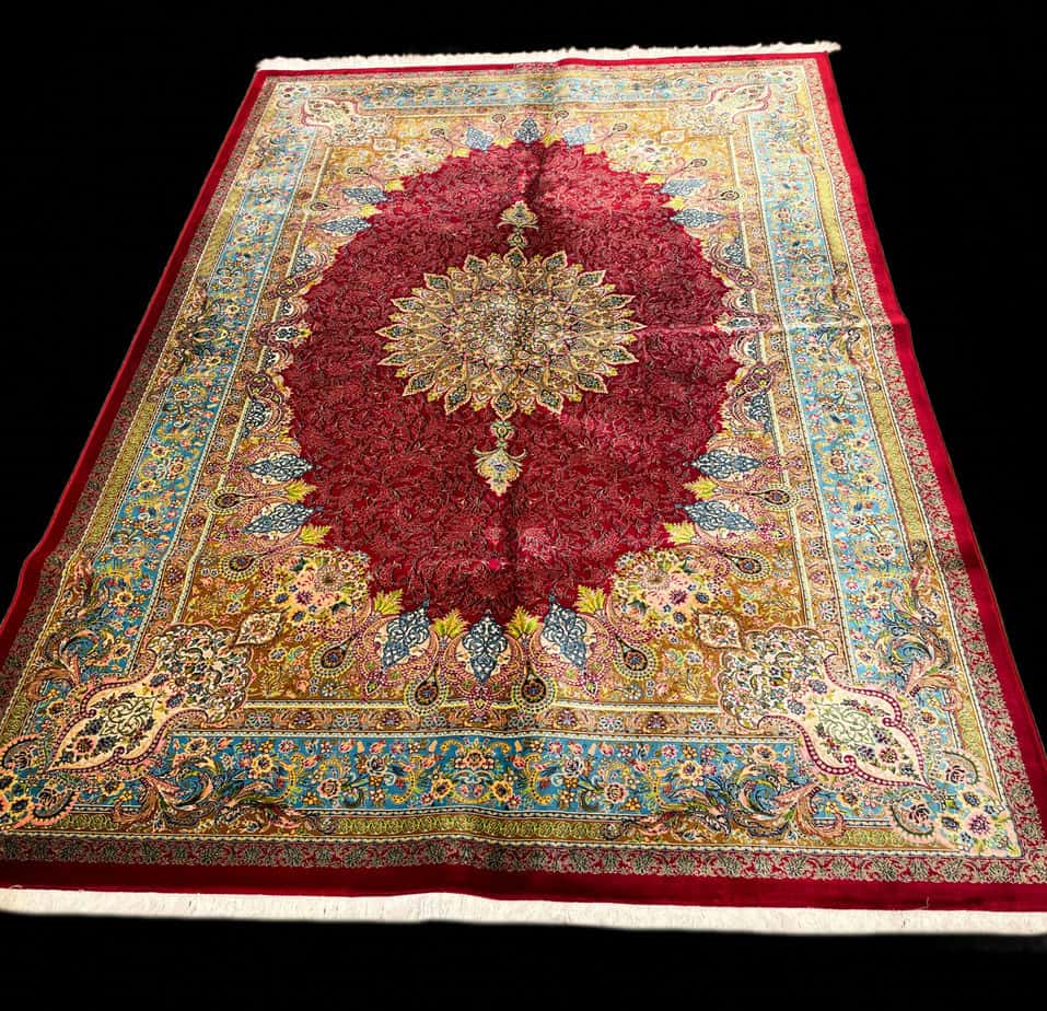 100% Silk Persian Rug – Deep Red