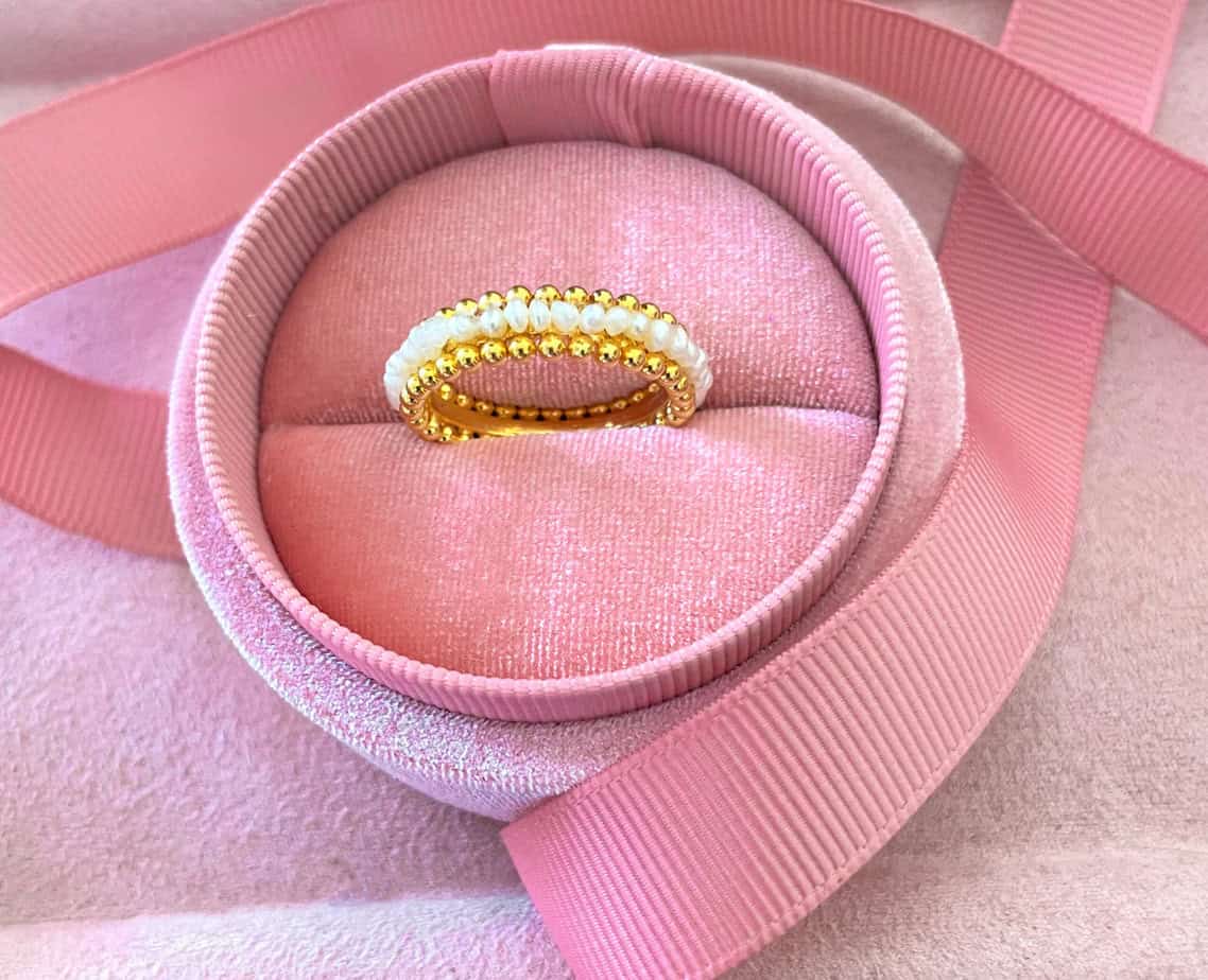 21K Gold Bahraini Pearl Band Ring – Lustrous Natural Pearls Set in Luxury Gold