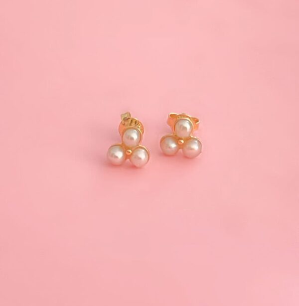 18K Gold Pearl Stud Earrings with Natural Bahrain Pearls – Trio Pearl Studs