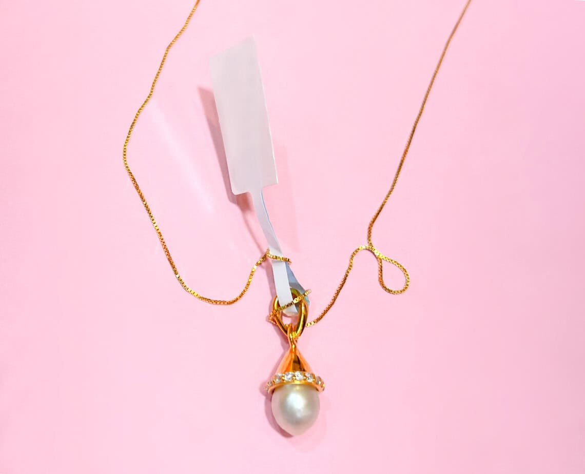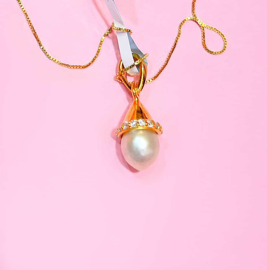 Bahrain Pearl and Diamond Pendant Necklace – Unique Gold Encased Design